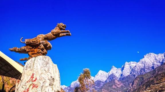 湍急的金沙江极速掉头北上,从哈巴雪山和玉龙雪山的夹缝中硬挤了过去,形成了世界上最壮观的大峡谷,谷中最窄的地方就是著名的虎跳峡。