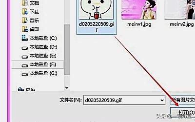 4、在弹出的打开对话框里,找到你要转换为jpg格式的图片,选中后,点击打开,如下图所示。