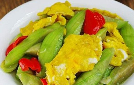 【材料】丝瓜480克,鸡蛋200克,大豆油40克,盐3克,大葱5克。
