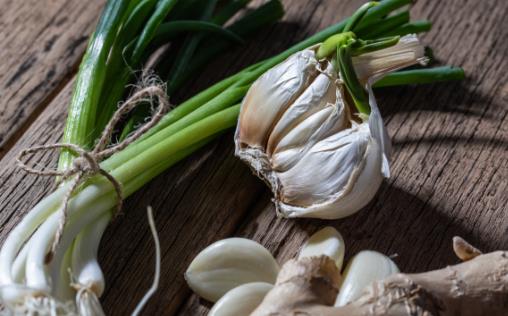 大蒜以超强的杀菌能力闻名,是一种天然“抗生素”。因为其含有一种叫蒜氨酸的独有物质,进入血液后会转换为大蒜素。这种大蒜素即使被稀释仍能杀死大肠杆菌、痢疾杆菌、葡萄球菌等多种病菌。蒜能够提味。烹调鸡、鸭、鹅肉的时候宜多放蒜,这样使肉更香更好吃,也不会因为消化不良而泻肚子。尽管大蒜对防病治病有诸多好处,但也不是多多益善。建议每天生吃大蒜不要超过4瓣,且不能空腹食用。而且阴虚火旺,并患有胃炎、胃溃疡、十二指肠溃疡、肾炎、心脏病和便秘者最好不要生食大蒜。